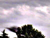 Passing behind tree moving at high speed toward the ground.